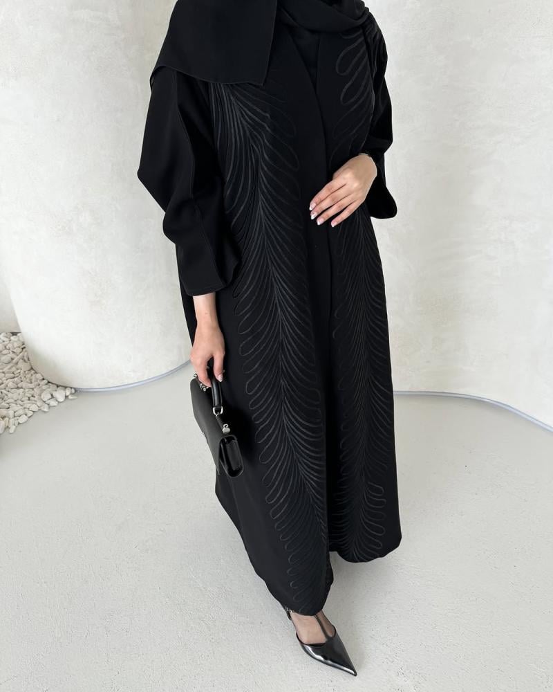 التفاصيل: عباية قماش كريب ملكي كـوري ، قصة نص كلوش، تطريزملون، طرحة مثل لون العباية تطريز ملون.