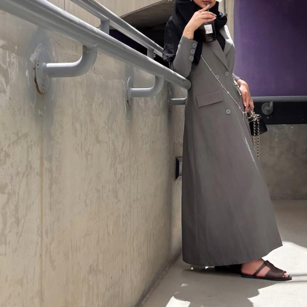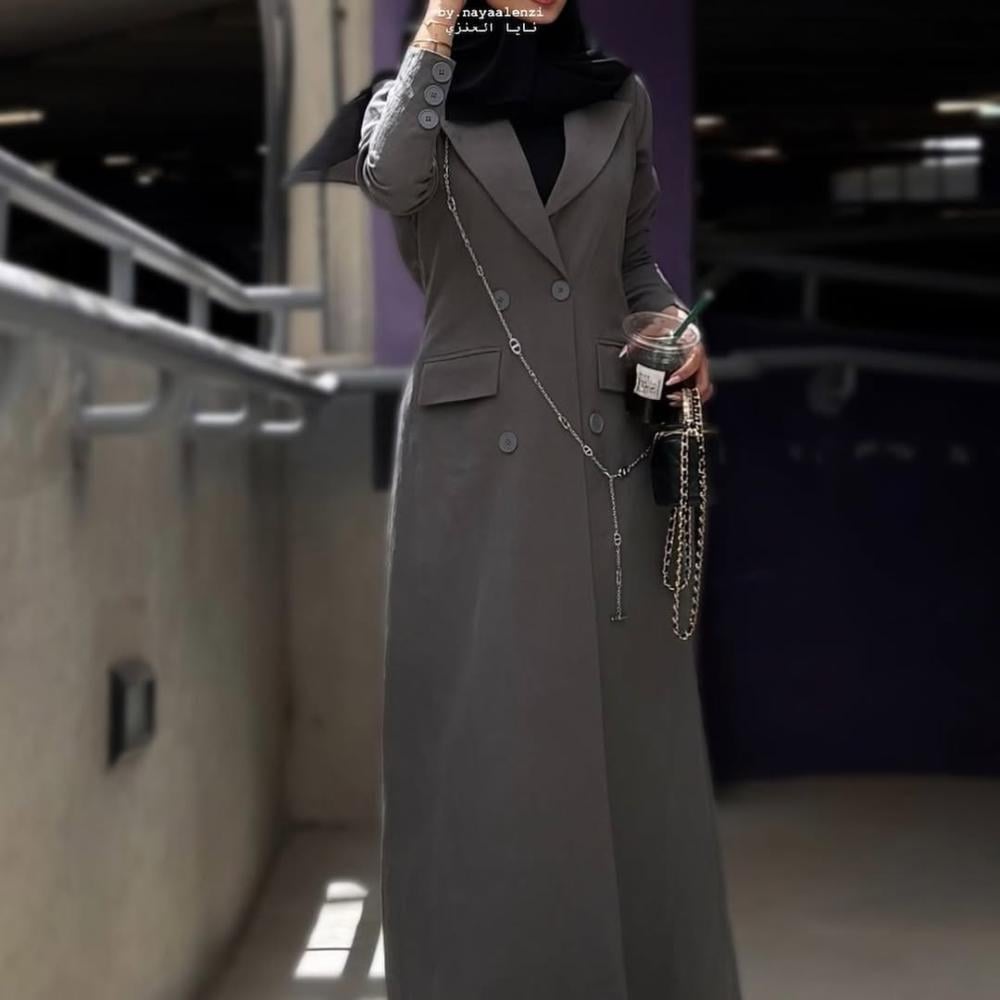 التفاصيل: عباية قماش كتان كـوري ، قصة بليزر صيفي مبطن ، شك ملون، طرحة مثل لون.