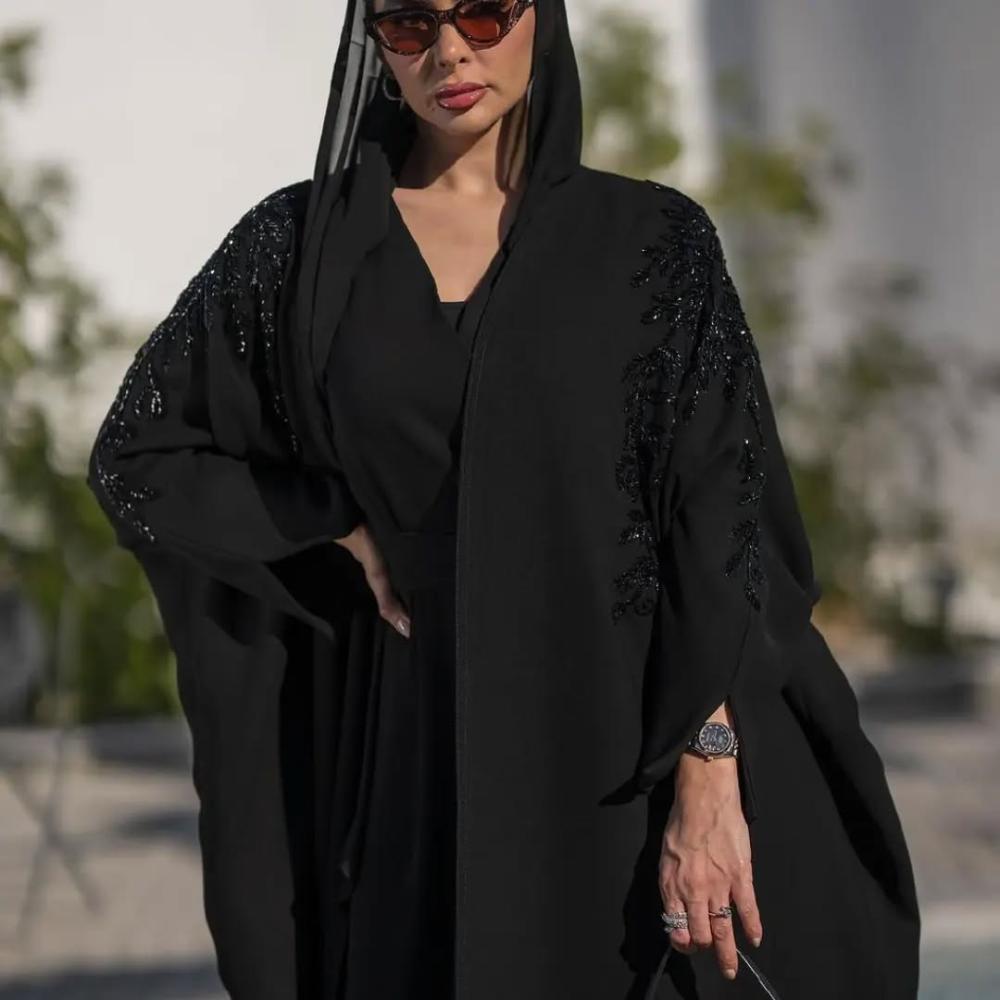 التفاصيل: عباية قماش كريب ملكي كـوري ، قصة ربع بشت، شك اسود، طرحة مثل لون العباية شك اسود.