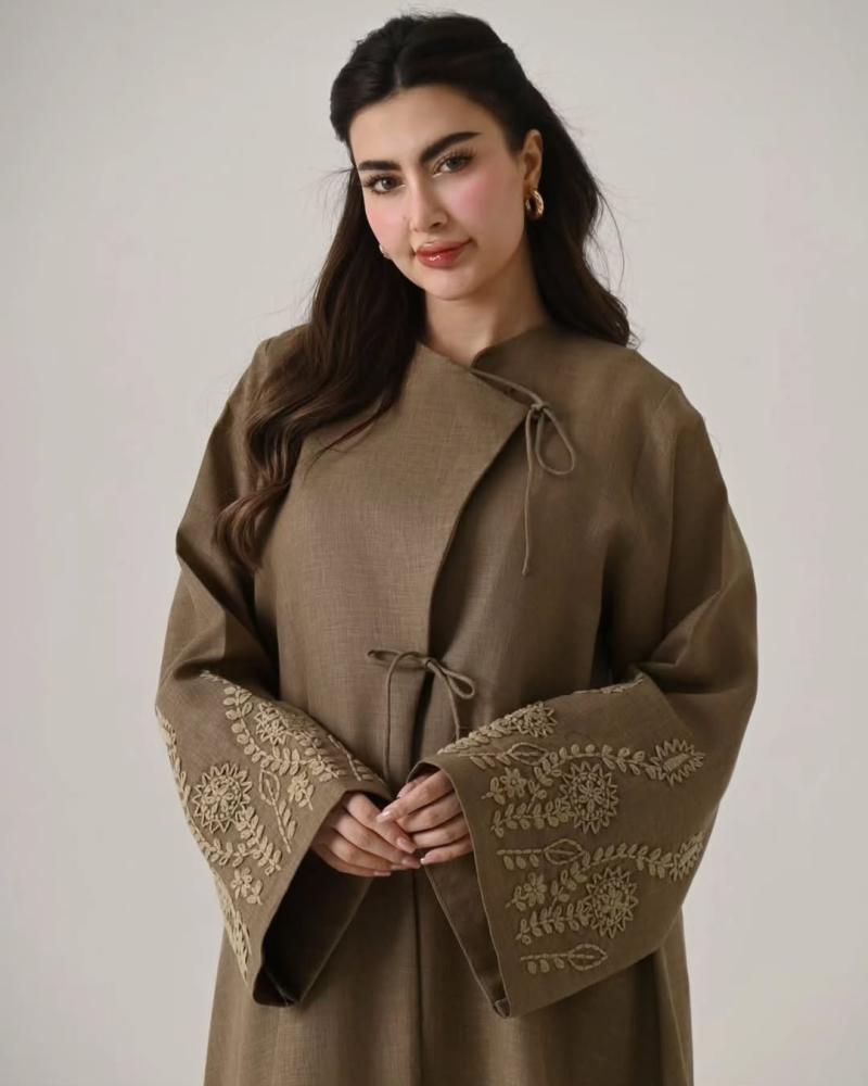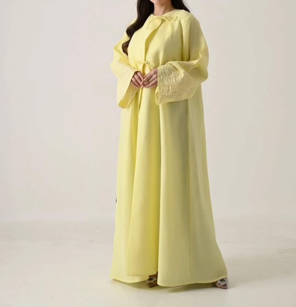التفاصيل: عباية قماش،لينن هندي قصة نص كلوش، شك ملون، طرحة مثل لون العباية شك ملون.
